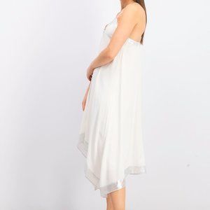 Rachel Roy Maddelena Sleeveless Handkerchief Hem White With Silver Trim - NWT