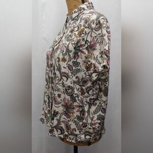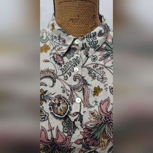 RACHEL ZOE 100% Linen Floral Button Down Short Sleeve