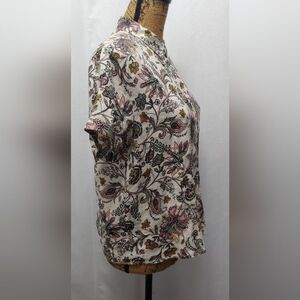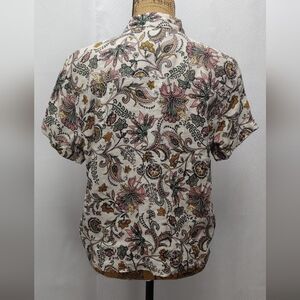 RACHEL ZOE 100% Linen Floral Button Down Short Sleeve Sz S