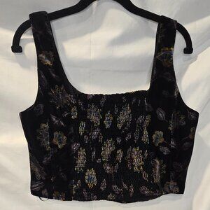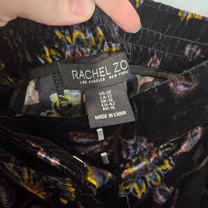 RACHEL ZOE 2-Piece Set Velvet Halter Crop Top Wide Leg Pant Black Floral Sz 12