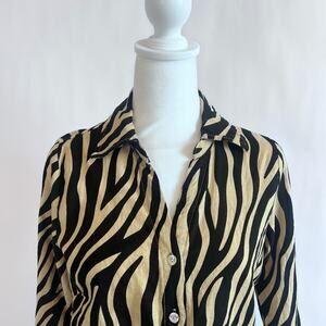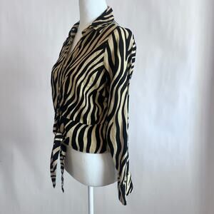 RACHEL ZOE ANIMAL PRINT RETRO 90'S TIE AT THE WAIST LONG SLEEVE BLOUSE SIZE MED