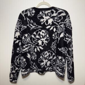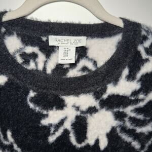 RACHEL ZOE Black White Fuzzy Floral Sweater Pullover Size M