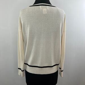 RACHEL ZOE Cashmere Knit Cream Sweater Black Stripe Trim Crew Pullover S Small