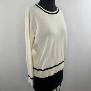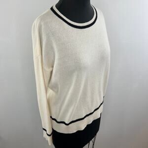 RACHEL ZOE Cashmere Knit Cream Sweater Black Stripe Trim Crew Pullover S Small