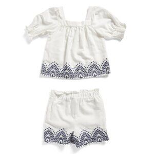 RACHEL ZOE Egret Girls 3pc Embroidered Shirt And Shorts With Sunglasses Set