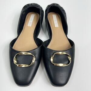 RACHEL ZOE Elleanor Ballet Flats Black Faux Leather Gold Pendant Women's 8.5M