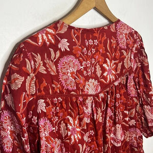 RACHEL ZOE Embroidered Boho Floral V Neck Valentines Day Peasant Babydoll Blouse