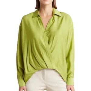 RACHEL ZOE Faux Wrap Hi-Lo Blouse in Chartreuse SZ M