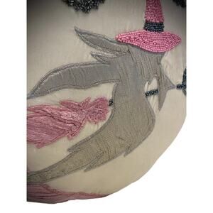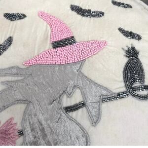 RACHEL ZOE Halloween Flying Witch Pink Moon Round Toss Beaded Pillow 16x6 New