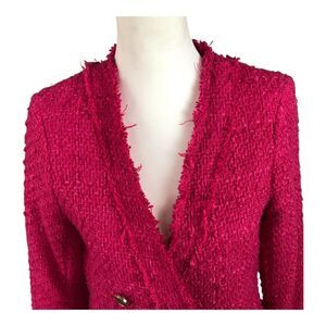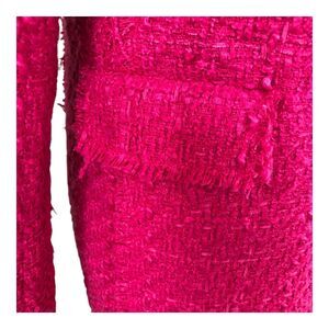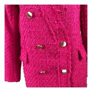 Look and feel your best in this classic, bold, hot pink, tweed, double-breasted, V-neck, open-front blazer jacket by fashion icon Rachel Zoe. This is the perfect layering piece for the office, going out, date night, brunch with the girls, cocktail parties, or wherever your adventures take you! Pair with your favorite dress, silk blouse, and trousers, knee-high boots, and shorts; the options are endless. Simply gorgeous!
