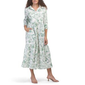 RACHEL ZOE IVORY/SAGE Toile Printed Maxi Shirt Dress