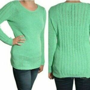 RACHEL ZOE Karla Mint Green Pullover Sweater Open Knit Medium Ribbed Long Sleeve