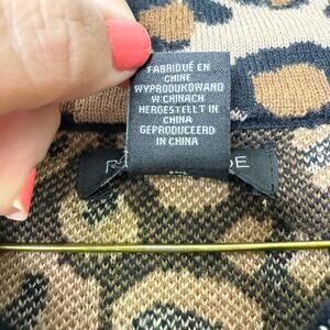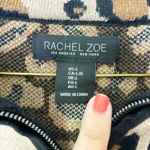 RACHEL ZOE Leopard Print Mock Neck Zip Front Cardigan Sweater Jacket Size LARGE