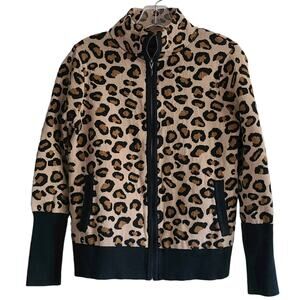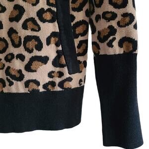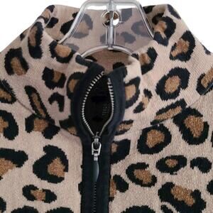 RACHEL ZOE Leopard Print Mock Neck Zip Front Cardigan Sweater Women's Size Small