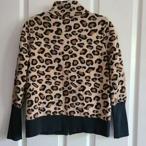 RACHEL ZOE Leopard Print Mock Neck Zip Front Cotton Blend Cardigan Sweater Women's Size Small
