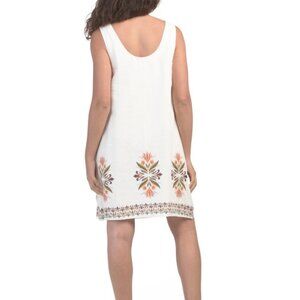 NEW in original packaging. Rachel Zoe linen blend floral print design, 2 front pockets, sleeveless, round neck, mini dress