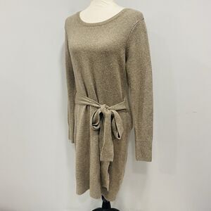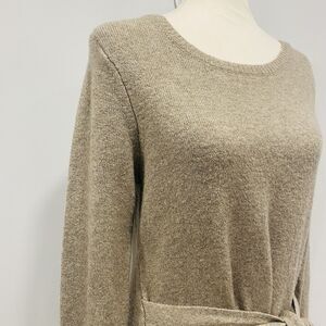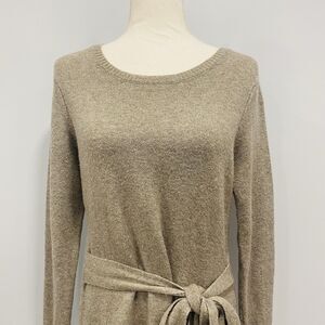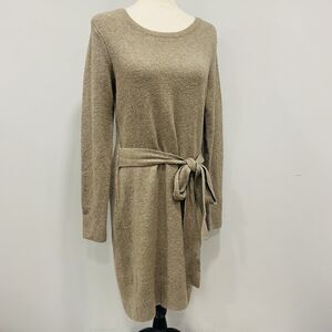RACHEL ZOE M Taupe Tan Belted Sheath Sweater Dress Merino Wool Blend Winter Cozy