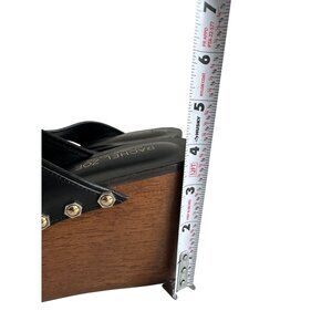 Elevate your style with these Rachel Zoe Maddi platform sandals, crafted from luxurious black soft calf leather. Perfect for any occasion, these size 6.5 sandals provide a chic and comfortable fit. 2" platform front with 3.5" wedge heel.