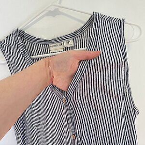 - white / navy blue vertical striped v-neck sleeveless tank blouse top