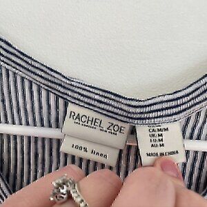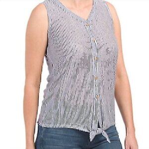 RACHEL ZOE Navy Blue White Striped Sleeveless Button Tie Knot 100% Linen Tank M