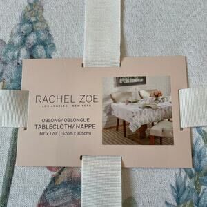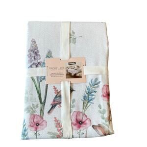 RACHEL ZOE Spring Tablecloth 60x120 Floral Bunnies Silver Glitter NEW