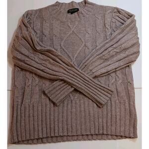 RACHEL ZOE Sweater Women's Large Puff Shoulder Long Sleeve Cable Knit Mocha