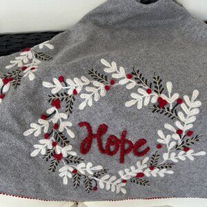 RACHEL ZOE Tree Skirt Christmas Embroidered Gray Red White Wool Blend HOPE EUC