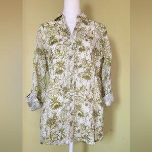 RACHEL ZOE Tropical Safari Print Button Down Shirt Size Small