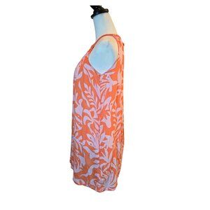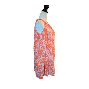 RACHEL ZOE Women's Linen Sleeveless Halter/Tunic/Cottage Coastal Mini Dress Sz: M Orange Coral Hibicus