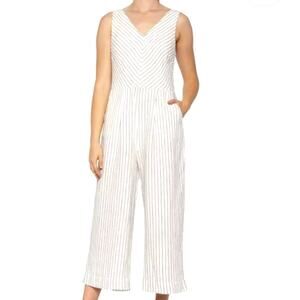 RACHEL ZOE Womens 10 Linen Sleeveless Jumpsuit Romper White Black Stripe Pockets