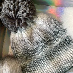 *Color: Beanie/Hat -Gray & Charcoal Ombre Pom Pom-Dark Gray, Light Gray & Off White