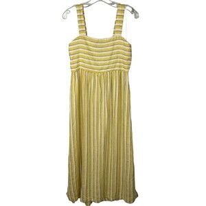 RACHEL ZOE Yellow Ivory Striped Linen Button Front Maxi Dress Sz 4