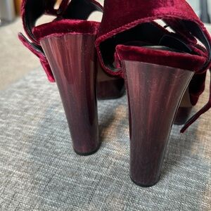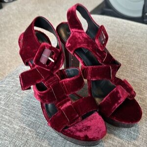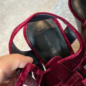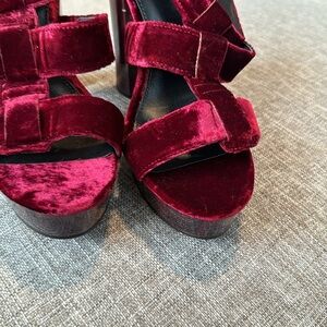 Women's Red Block Heel Platform Velvet Ankle Strap Sandals
