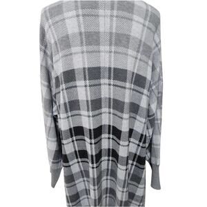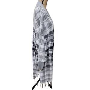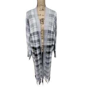 RACHEL Zoe grey black white plaid fringe maxi cardigan sweater plus size 1X new