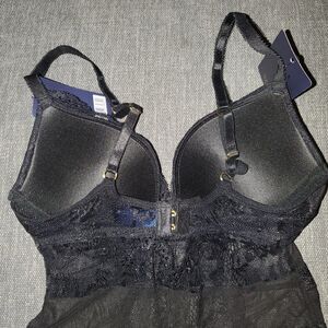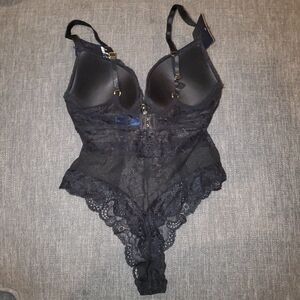 RACHEL Rachel Roy Black Lace Woman's Molded cup teddy Bodysuit Size S