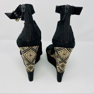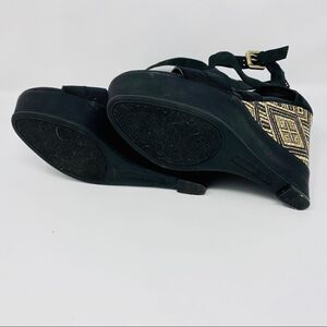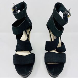 Gorgeous Black and Tan wedges from RACHEL Rachel Roy! These have elastic uppers with a buckle. These have a few marks from wear, but overall they are fabulous! Size 9.5. Please see pictures.