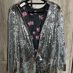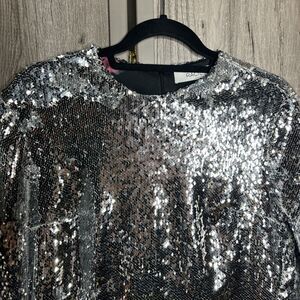 RACIL Silver Sequined Dress Mini Formal Party Cocktail Long Sleeves Size 38