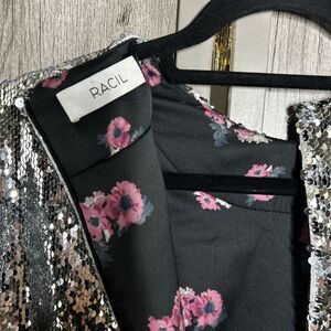 RACIL Silver Sequined Dress Mini Formal Party Cocktail Long Sleeves Size 38