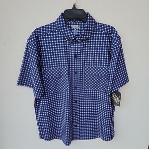 RACKS & REELS Button Up Shirt UPF 50 LENS CLOTH Men Sz M Blue Plaid Shrt Sleeve