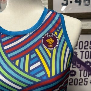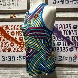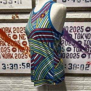 Vibrant and stylish, this women's tank top features a dynamic striped pattern in blue, green, and red. Perfect for adding a pop of color to your wardrobe.
