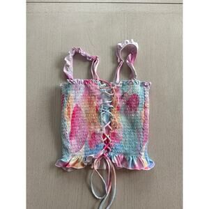 RAD Swim Crop Top Swimsuit Top Rainbow Pastel Watercolor Corset Top (T)