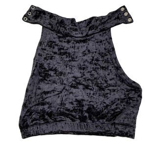 RAD Black Velour Pole Dance High Neck Halter Top | Open Back Snap Neck