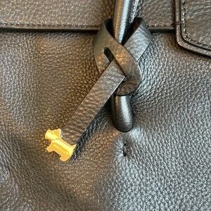 Lined interior, two front slip pockets, one back zip pocket, middle zip compartment