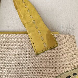 RADLEY STUNNING WOVEN CONTRAST YELLOW LEATHER GREEN STITCH TRIM TOP HANDLE TOTE