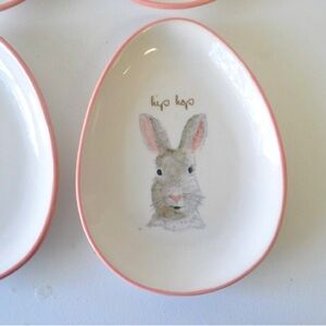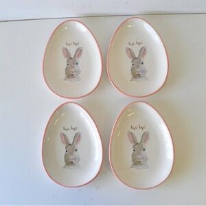 RAE DUNN Vintage Set of 4 plates Artisan Collection Easter Hip Hop Bunny Rabbit Egg Shaped Ceramic Dishes with Pink Trim/oval bunny rabbit plate /Easter decor