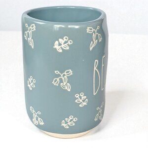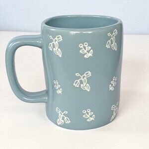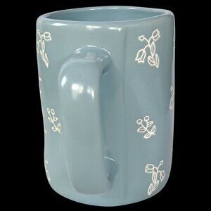 RAE DUNN BELIEVE Blue Mug Flowers Floral Design Full Wrap 18 oz.