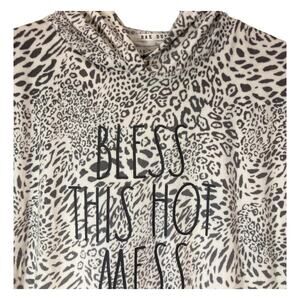 RAE DUNN "Bless This Hot Mess" Small Snow Leopard L/S Sweatshirt Hoodie Sz M