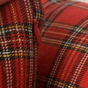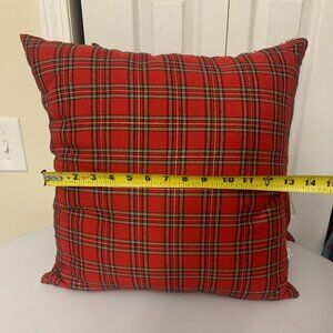 RAE DUNN PLAID CHRISTMAS PILLOWS SET OF TWO. REMOVAL PILLOW COVERS. MEASURES 13 INCHES WIDE X 14 INCHES TALL ( 14 X 14 SQUARE)