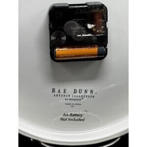 The RAE DUNN Clock Artisan Collection LL "HOME" 9" Ceramic Wall Clock is a stylish and contemporary piece perfect for a new home. This battery-operated clock features a round shape with a large white letter "HOME" in black, embodying the Rae Dunn Farmhouse theme. Made of ceramic with a glossy ivory finish, this wall clock adds a touch of modern simplicity to any room, especially the dining room. Designed by Rae Dunn, the Artisan Collection LL creates a statement piece that is both functional and decorative.