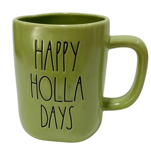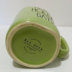 Add some festive cheer to your holiday season with this brand-new Rae Dunn ceramic mug. The mug features the words "Happy Holla Days" in vibrant magenta against a green background. Perfect for sipping on your favorite hot beverage, this mug is a must-have for any Rae Dunn collector or holiday enthusiast. Crafted using the finest pottery techniques, this contemporary original mug is made to last. With its unisex adult design, this Rae Dunn mug makes for a great gift idea too. So, why not lift your spirits this winter with a cup of warmth in this beautiful Rae Dunn mug?